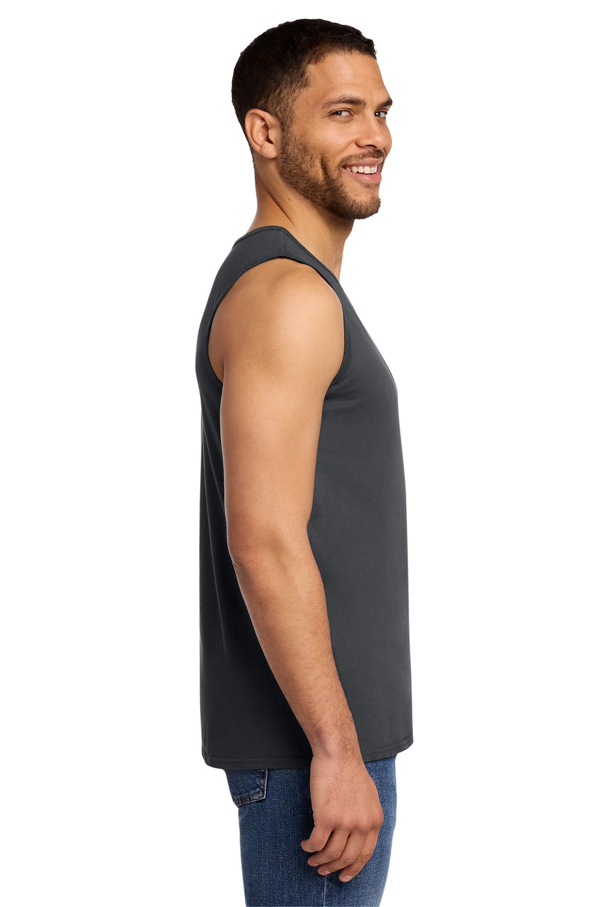 A tank with a vintage look—thanks to our garment dye treatment.